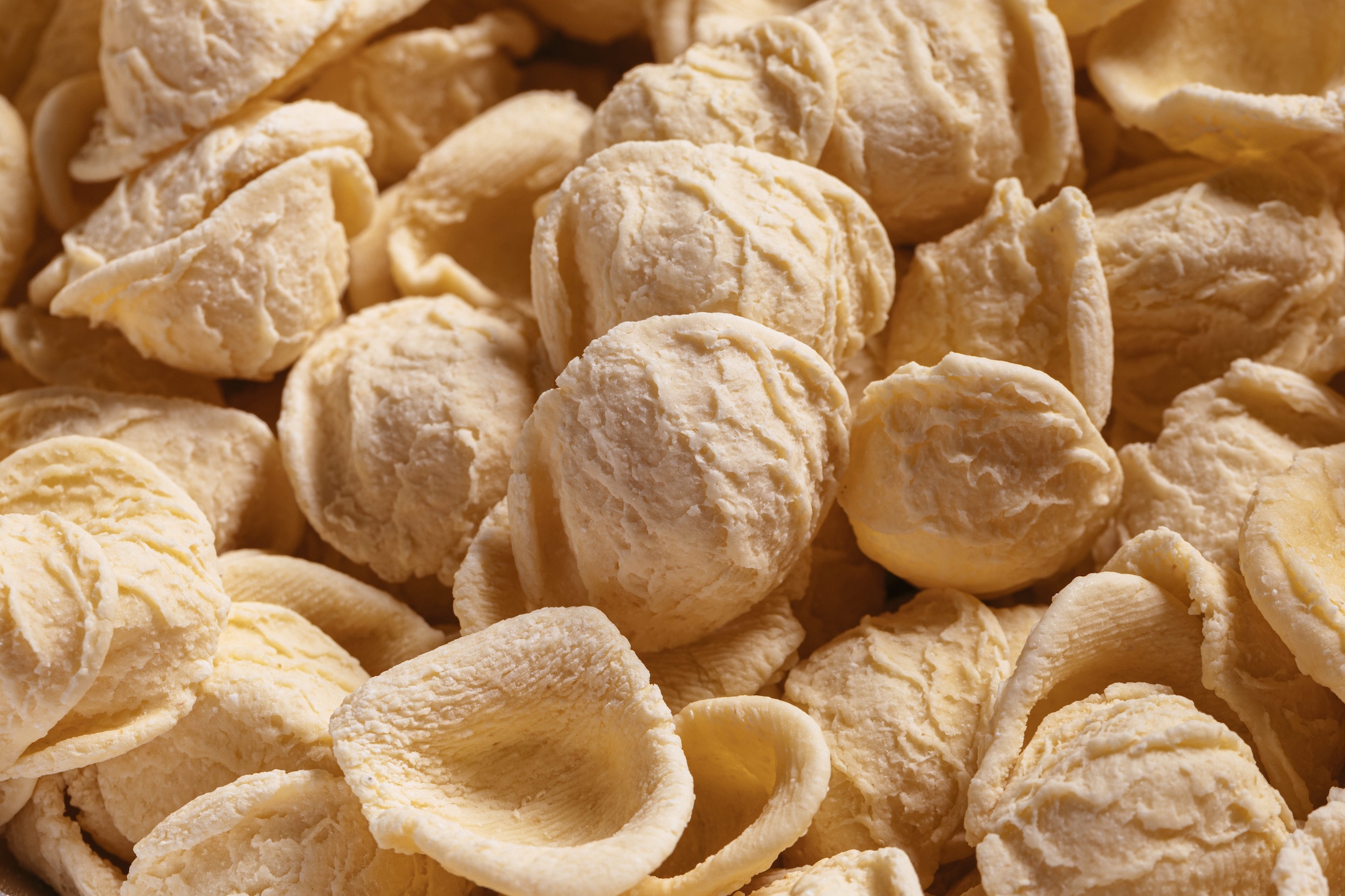 Orecchiette — piccole e accoglienti come il loro nome, raccolgono il condimento in ogni curva. Ideali con cime di rapa o pomodoro fresco.